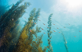 DHAを生成する微細藻類や原生生物を動物プランクトンや魚が食べ、海の中で食物連鎖が起きることで、最終的に大きな魚にDHAが濃縮されていきます。